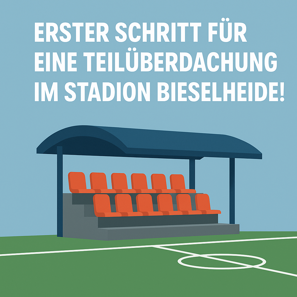 Gemeinsam mit Katharina Giessmann und Michael Breier haben wir einen Antrag in die Gemeindevertretung eingebracht, um den Zuschauerbereich am Sportplatz Bieselheide endlich teilweise zu überdachen.
